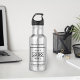 A classic stainless steel water bottle designed for businesses to brand with their business name on top and their own custom logo within a square frame, plus location, slogan, and website. The brushed stainless finish creates a timeless hydration accessory for employee wellness gifts, corporate retreats, trade shows, fitness programs, or branded marketing kits. All text fields and the uploaded logo are fully customizable.