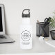 A clean white stainless steel water bottle designed for businesses to brand with their own custom logo within a circular frame, plus business name, location, slogan, and website. The crisp white finish creates a polished hydration accessory for employee wellness gifts, corporate retreats, trade shows, fitness programs, or branded marketing kits. All text fields and the uploaded logo are fully customizable.