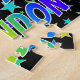 This fun, exciting, birthday-themed jigsaw puzzle design has the message "HAPPY BIRTHDAY, BRANDON" with the characters having a colourful rainbow spectrum inspired gradient pattern, along with a lively stars background pattern. An exciting puzzle like this might be a fun way to send birthday greetings to somebody named Brandon. [~Z0000468]