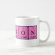 Brannon spelled out as B Ra N N O N (Boron Radium Nitrogen Nitrogen Oxygen Nitrogen) on a mug for the scientist in you.