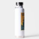 The bottle looks even better in real life. The ice cubes I put in lasts all day! I have my bottle with me all the time. It's summer and having something cold to drink feels amazing. With this bottle I always have something super cold. I have only tried the hot drink once and it lasted a long time as well. The color blue is a navy blue and the white printed on it is vibrant. It printed perfectly. I love my personalized smile water bottle.
