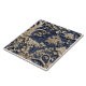This ceramic tile features a beautiful tree with brass flowers set against a blue background. The intricate golden and blue mural with flowers creates a captivating visual experience. The relief sculpture design, in dark navy and light beige, adds depth and texture. The pattern is repeatable and seamless, making it a versatile choice for various spaces.