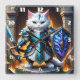 Brave Cat Warrior in Fantasy Armour by Castle Square Wall Clock
