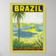 Vintage travel poster for Brazil showing Rio De janeiro's Sugar Loaf Mountian and Guanabara Bay.