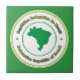A silhouette of the country of Brazil is at the centre of this design. The text that features above and below the silhouette is in English and Portuguese. The colours of the design are taken from the colours of the Brazilian flag.