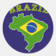 BRAZIL Map/Flag on Navy Background Classic Round Sticker