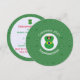 For your Christmas party, this round invitation features an angel wearing the flag of Brazil. She flies inside a white, fractal circle of squiggly squares, surrounded by a background fractal of green squiggly squares. Add a name to the front to personalise. Add a year to customise. Or, change the text to whatever you like. Party information is on the back and can be customised for your event.
