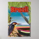 Brazilian Beach Post Card travel print. A brazil travel poster with a kingfisher bird on a beach.