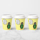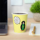 Party paper cups show Ms. Penguin after enjoying her trip to Brazil. She proudly wears a vest of the green, blue, yellow, and white Brazilian flag. Here, she models it with a talk bubble. Change the words in her talk bubble to create a unique message for your guests. The yellow background can be changed by you, if you wish to compliment your party theme.