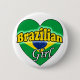 Leuke Button met een hart afgebeeld met de Braziliaanse vlag erop. Op de tekst staat: Brazilian girl De achtergrond is in de kleur wit. Leuk om te geven als cadeau of voor jezelf om te laten zien dat je trots bent om Braziliaans te zijn. kleuren: groen, geel en blauw.