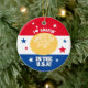 Fun culinary Christmas ornament for your bread baker, bakery or food themed tree featuring a loaf of bread and USA patriotic background with stars, personalised with your text.