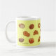 Mug with cheerful bread drawing design. Light yellow background. This coffee mug with 17 different original bread and pastry drawings will brighten your morning and afternoon. Makes a great gift for yourself or others for any occasion.
