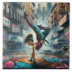 Breakdancer Women in action New York silhouette Ceramic Tile