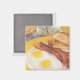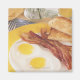 Breakfast foods vary widely from place to place, but often include a carbohydrate such as grains or cereals , fruit and/or vegetable, a protein food such as eggs , meat or fish , and a beverage such as tea , coffee or fruit juice . Coffee , tea , juice , breakfast cereals , pancakes , sausages , bacon , sweet breads , fresh fruit , vegetables , eggs , mushrooms , black pudding , baked beans , muffins , crumpets and toast with butter or margarine and/or jam or marmalade are common examples of breakfast foods, though a large range of preparations and ingredients are associated with breakfast globally.