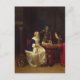 This Baroque genre masterpiece titled, Breakfast was made by Gabriel Metsu using the oil on panel technique. According to Arnold Houbraken, he often painted young women who either sold goods at market or were grocery-shopping themselves for these things. Houbraken ends his biography with the comment that he was