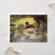 This design features a painting by the Italian artist Giuseppe de Nittis (1846–1884). It shows a family eating breakfast at a formal table in the garden. A woman and young boy are sitting at the table, and there is an empty seat, perhaps where the lady's husband had been sitting. There are ducks and swans walking on the grass in the garden, and the boy is attempting to feed one of the birds with his food. The family is eating from fine porcelain plates and there is white linen on the table. There is also a bouquet of flowers in a vase on the table. The original art was painted by Giuseppe de Nittis in 1883.