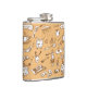 The flask itself is fine. It’s a cheap flask, obviously bought in bulk, however am prepared to overlook that. Given that it is a personalized item, I would have liked to have seen gift boxing instead of the generic packaging. Terrible printing, and/or quality. It’s a cheap, tacky vinyl. It is not cut straight and is also applied in a way that it is overhanging the bottom, causing the glue to catch on items and it will eventually roll and tear, damaging the wrap.