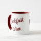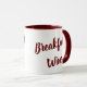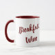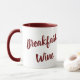 This funny cup design has the phrase "Breakfast Wine" on both sides in a maroon color.