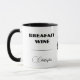 Shop our customisable mug featuring a delightful bunch of grapes and the playful phrase 'Breakfast Wine.' Perfect for wine lovers and a great addition to your morning routine, this ceramic mug can be personalised with your name, making it an ideal gift for yourself or a fellow wine enthusiast. Enjoy your coffee, tea, or favourite beverage in style with this unique and fun design. Order yours today and raise your mug to breakfast!
