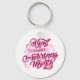 Keychain is shown with a art print of Breast Cancer Awareness.