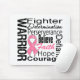Breast Cancer Warrior awareness t-shirts, merchandise & gifts featuring a collage describing the attributes of a cancer warrior. The design features text attributes of a warrior including the words Fighter, Determination, Perseverance, Believe, Faith, Hope, Defiant and Courage. This design is arranged in a cool distressed pink ribbon, collage text with mixed style fonts providing a unique flair to the design element.