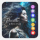 Peaceful ai art depicting a beautiful woman with hair blowing in the wind and a pretty blue celestial blue ethereal background. Quote, "Breathe and Release." Pretty illuminated chakras spiritual art.