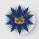 Pictured on a blue designed boho star is the word breathe in a dimensional light brown design