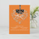 This gorgeous elegant wedding invitation features a heart shape filled with delicate white flowers and a black satin graphic ribbon and bow. Modern & romantic this will certainly set the stage for your special day. Easily customised. Lots of colours to choose from. (pumpkin)