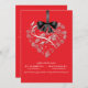 This gorgeous elegant wedding invitation features a heart shape filled with delicate white flowers and a black satin graphic ribbon and bow. Modern & romantic this will certainly set the stage for your special day. Easily customised. Lots of colours to choose from. (retro red)
