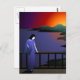 Woman and seascape sunset. Done in a style that is heavily influenced by Japanese and Chinese sumi-e ink painting.