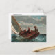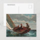 A fine art postcard with the painting by Winslow Homer, an American artist (1876) from the realism movement, Breezing Up (1873-1876), also known as Fair Wind. A group of boys in a sailboat on the ocean named Gloucester, letting wind in the sails.