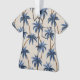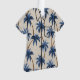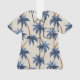 Navy and Amparo Blue colorway on natural ground. Modern stylised palm trees sway on a faux grasscloth patterned background. Bring a little aloha in to your home decor. This design comes in several colorways.
