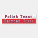 Show your pride in your hometown. This beautiful bumper sticker design features a red and white Polish flag overlay and the words Polish Texan on top and Bremond, Texas on the bottom.