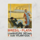 Vintage ocean liner poster for French shipping line Chargeurs Reunis South Atlantic services to Brazil and the Rio de La Plata ports.