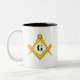 "Brew with Brotherhood: Square and Compass Masonic Two-Tone Coffee Mug