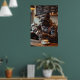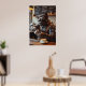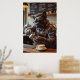 This energetic French Bulldog poster turns your wall into a hilarious coffee scene. The pup, dressed in a green and white flannel shirt with suspenders and glasses, is hard at work frothing milk and pouring a latte masterpiece. His bug-eyed focus shows he’s deep in the grind. “Bark Roast” and other punny drinks fill the chalkboard menu. Great for anyone who needs a boost of humour with their caffeine fix.