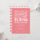 This fun couples shower invitation features a pink plaid background to set the stage for your "brews and BBQ" shower. Would be great for a baby shower or a bridal shower!