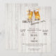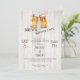 This rehearsal dinner invitation features a relaxed, rustic design that sets the tone for a fun and welcoming celebration before the big day. The vintage wood background, paired with beer glasses, gives the card a laid-back, “gather and celebrate” feel that’s perfect for a casual pre-wedding dinner.