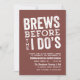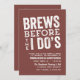 Brews before the I Do's! Celebrate before a wedding - either a rehearsal dinner, engagement party or bachelor/bachelorette party - with this cool brewery-themed invitation. The white type on the brick red background can be customised with all the details of the party. Matching party decor also available.