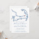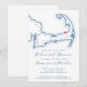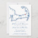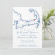 This casual rehearsal dinner invitation features a modern, elegant navy blue Cape Cod map theme, perfect for a wedding in Brewster, MA. Set the tone for a memorable pre-wedding celebration with this chic design. Ideal for venues like Ocean Edge Resort, The Brewster Inn, and The Captains Golf Course. The sophisticated map adds a personal touch to your Cape Cod wedding weekend. Artwork by Coastal Map Designs.