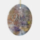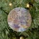 A 1st Christmas ornament that can be customised with your baby's name, birthdate, weight and length featuring a brick abstract pastel painting with a combination of fall and winter shades of brown, blue, white, green and yellow.