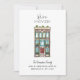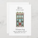 Original illustration by Becky Nimoy. Brick multistory home or apartment perfect for a moving announcement or house warming invitation.