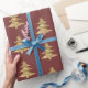 Brick Red Gold Christmas Tree Wrapping Paper