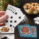 Add your own message to these playing cards featuring a fun and quirky illustration of an octopus with a twisting mass of tentacles. The octopus is a brick red colour with cream and tan accents and is set against a turquoise blue background. Your personalised message appears in tan coloured lettering on the body of the octopus. Perfect for adding your own name, funny saying or other custom text to create your own unique deck of cards.