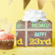 This fun birthday-themed wrapping paper design features a message like "HAPPY 23rd BIRTHDAY, MICHAEL!", where the name can be personalised. The background features a representation of a brick wall consisting of some reddish-brown coloured bricks. The customisable message text features colours like blue, yellow, and green, and it has an appearance inspired by that of painted graffiti. Wrapping paper like this could perhaps be used when wrapping birthday gifts being given to somebody who is celebrating their twenty third birthday. [~Z0000274]