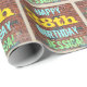 This fun birthday-themed wrapping paper design features a message like "HAPPY 38th BIRTHDAY, JESSICA!", where the name can be personalised. The background features a representation of a brick wall consisting of some reddish-brown coloured bricks. The customisable message text features colours like blue, yellow, and green, and it has an appearance inspired by that of painted graffiti. Wrapping paper like this could perhaps be used when wrapping birthday gifts being given to somebody who is celebrating their thirty eighth birthday. [~Z0000274]