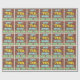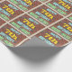 This fun birthday-themed wrapping paper design features a message like "HAPPY 7th BIRTHDAY, NAME-HERE!", where the name can be personalised. The background features a representation of a brick wall consisting of some reddish-brown coloured bricks. The customisable message text features colours like blue, yellow, and green, and it has an appearance inspired by that of painted graffiti. Wrapping paper like this could perhaps be used when wrapping birthday gifts being given to somebody who is celebrating their seventh birthday. [~Z0000274]