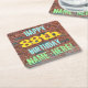 This fun birthday-themed coaster design features a message like "HAPPY 88th BIRTHDAY, NAME-HERE!", where the name can be personalised. The background features a representation of a brick wall consisting of some reddish-brown coloured bricks. The customisable message text features colours like blue, yellow, and green, and it has an appearance inspired by that of painted graffiti. Coasters like these might be useful as practical decorations at a birthday party for somebody who is celebrating their eighty eighth birthday. [~Z0000288]