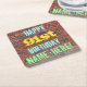 This fun birthday-themed coaster design features a message like "HAPPY 91st BIRTHDAY, NAME-HERE!", where the name can be personalised. The background features a representation of a brick wall consisting of some reddish-brown coloured bricks. The customisable message text features colours like blue, yellow, and green, and it has an appearance inspired by that of painted graffiti. Coasters like these might be useful as practical decorations at a birthday party for somebody who is celebrating their ninety first birthday. [~Z0000288]