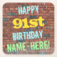 Brick Wall Graffiti Inspired 91st Birthday + Name Square Paper Coaster